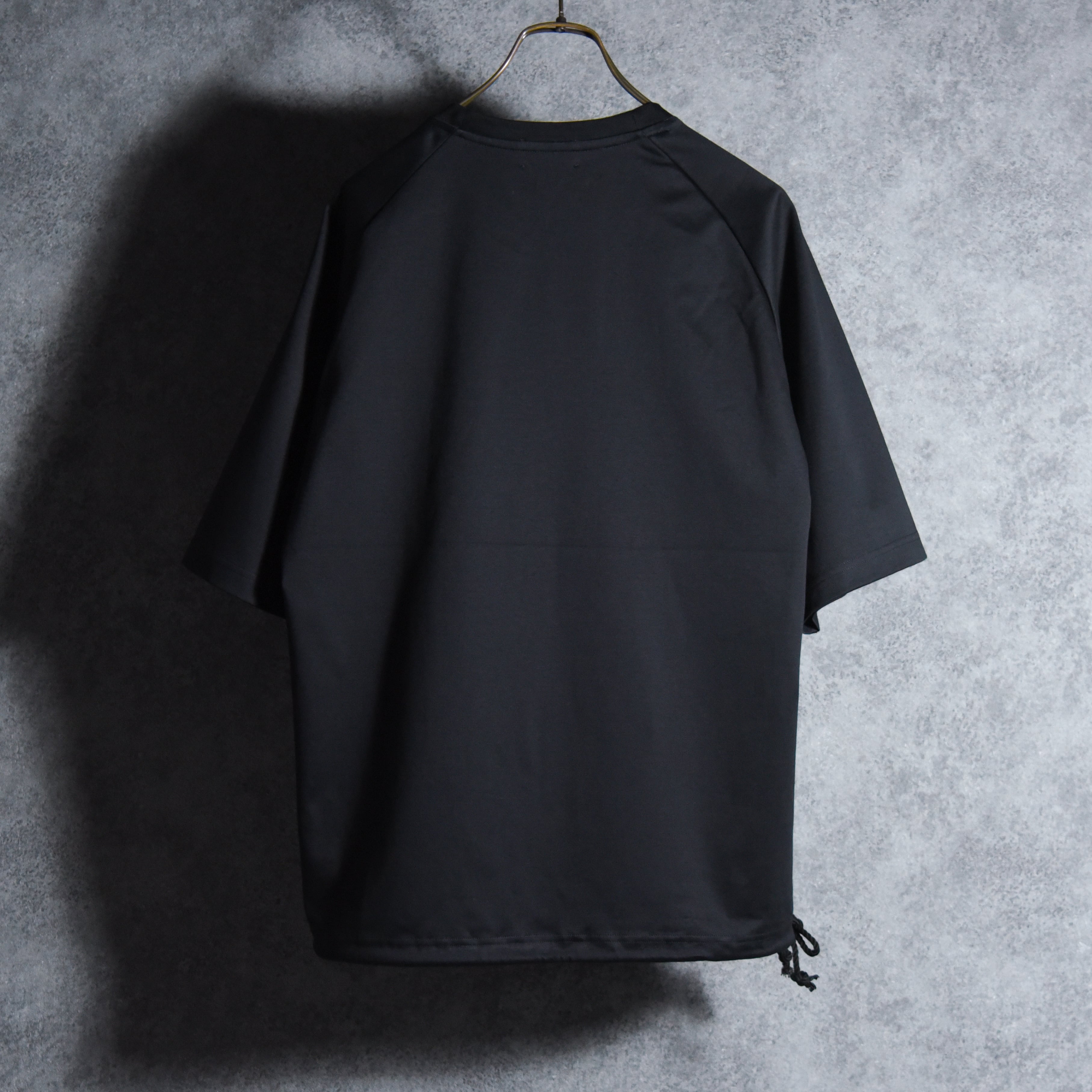 一見シンプルなクルーネックですが裾はコットンコードを絞ることでシルエット変化を楽しめ、コードもプラスチックのストッパーなどは付けずに結ぶだけの仕様なので、スポーティな雰囲気になりすぎない大人も着やすいデザインに仕上がっています。