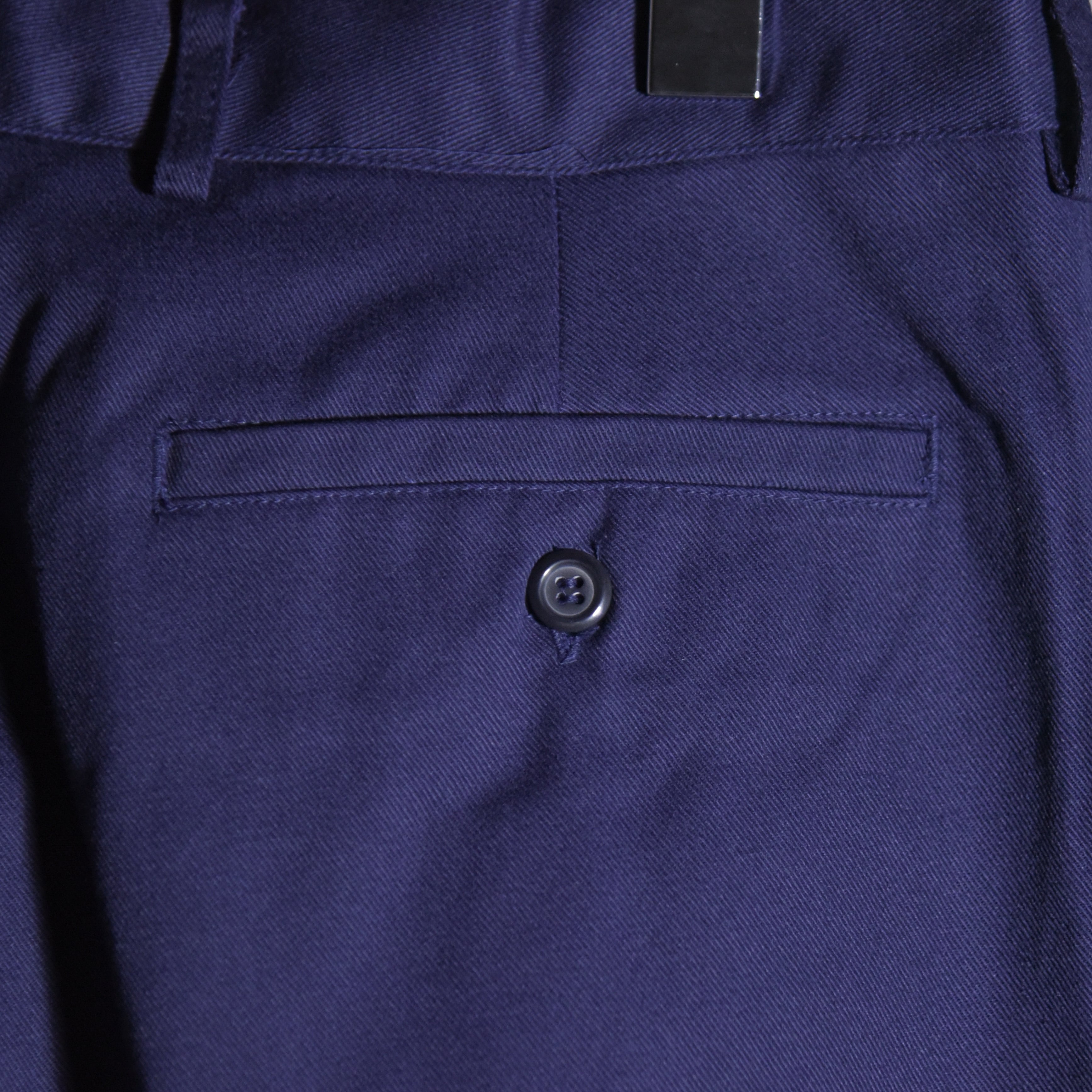 カラーはやや青みがかったネイビーでコーディネートしやすさなど含めてクローゼットに一本あると助かる万能なスラックス。