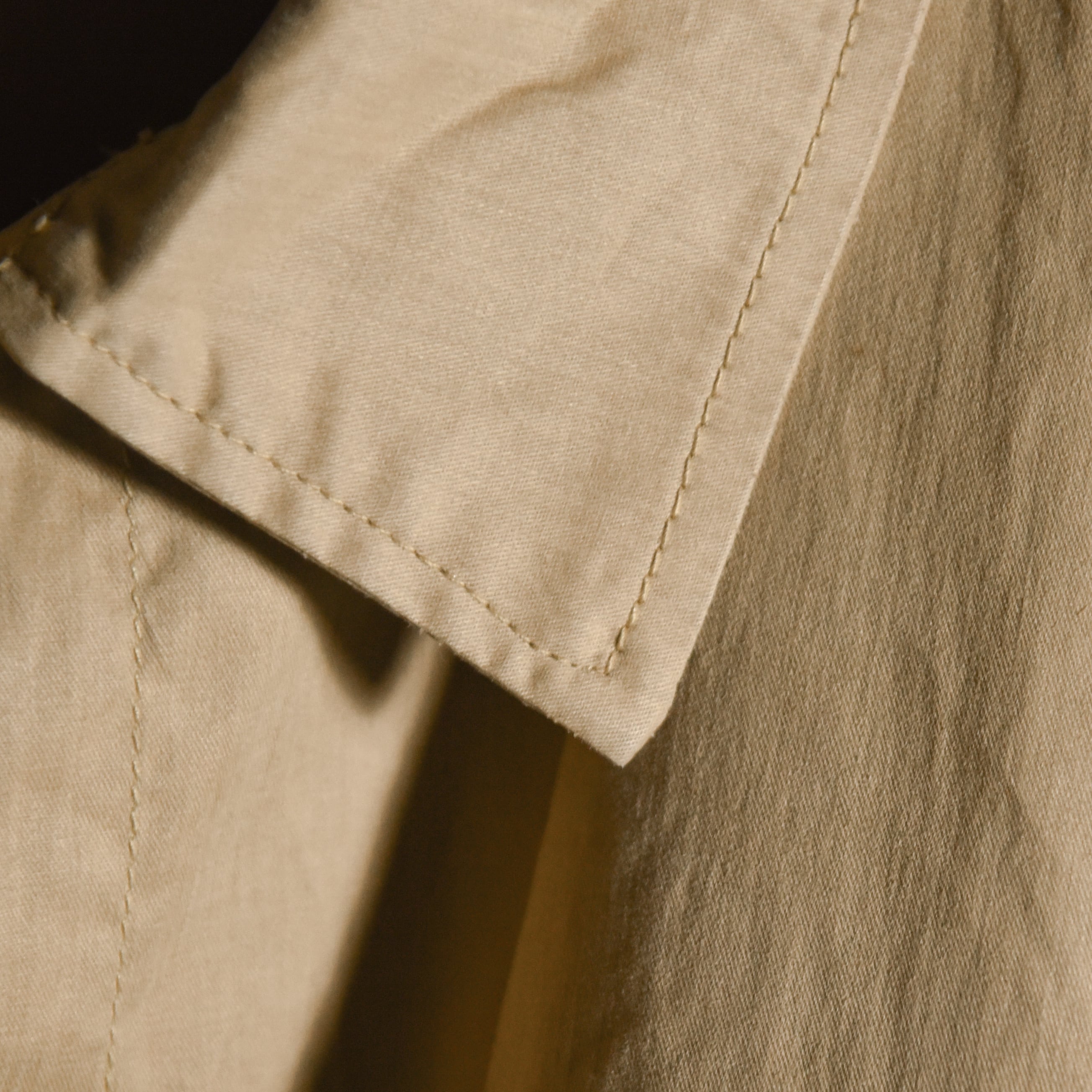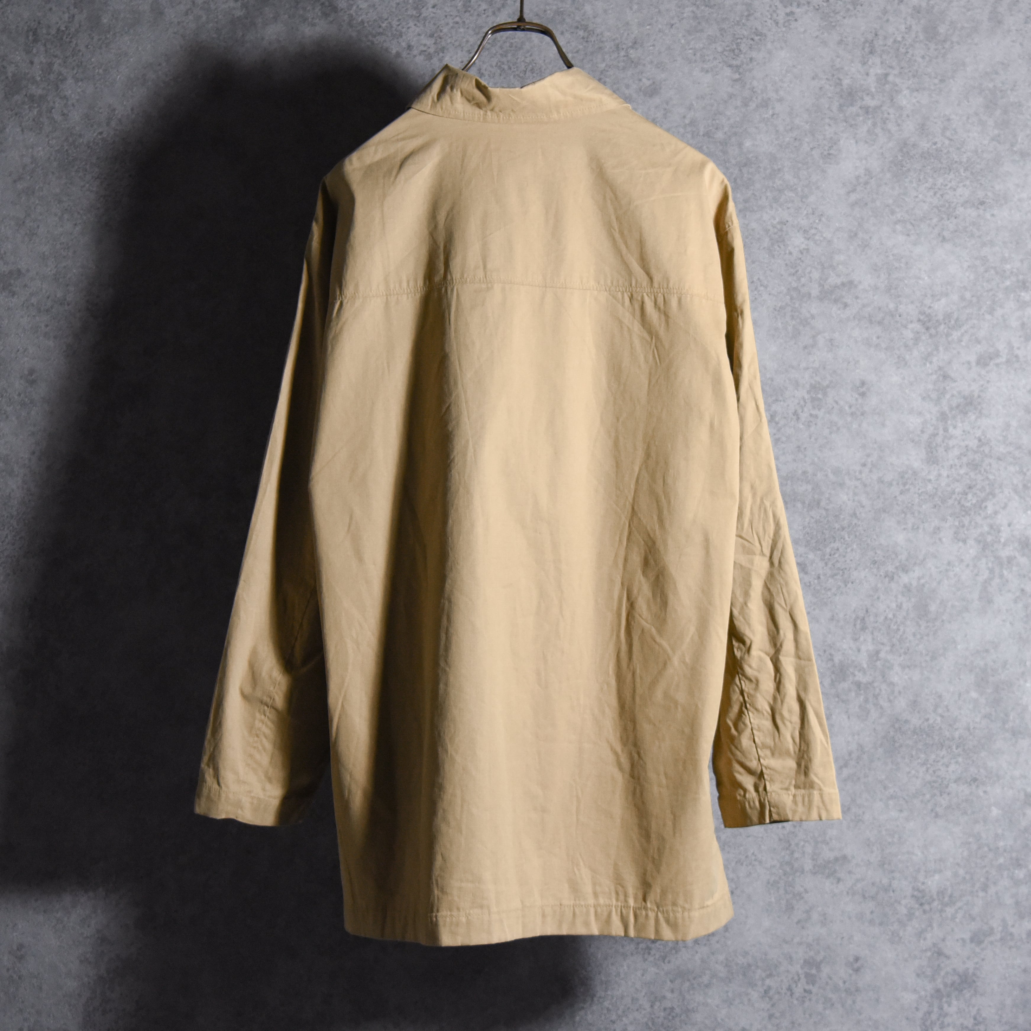 左胸のやや低めの位置でヨークの切替を利用して配置されたフラップポケットが、ワークウェアやミリタリーウェアのような無骨なニュアンスと洗いざらしたようなシワ感が、ヴィンテージ特有の良い雰囲気の大人な一着です。