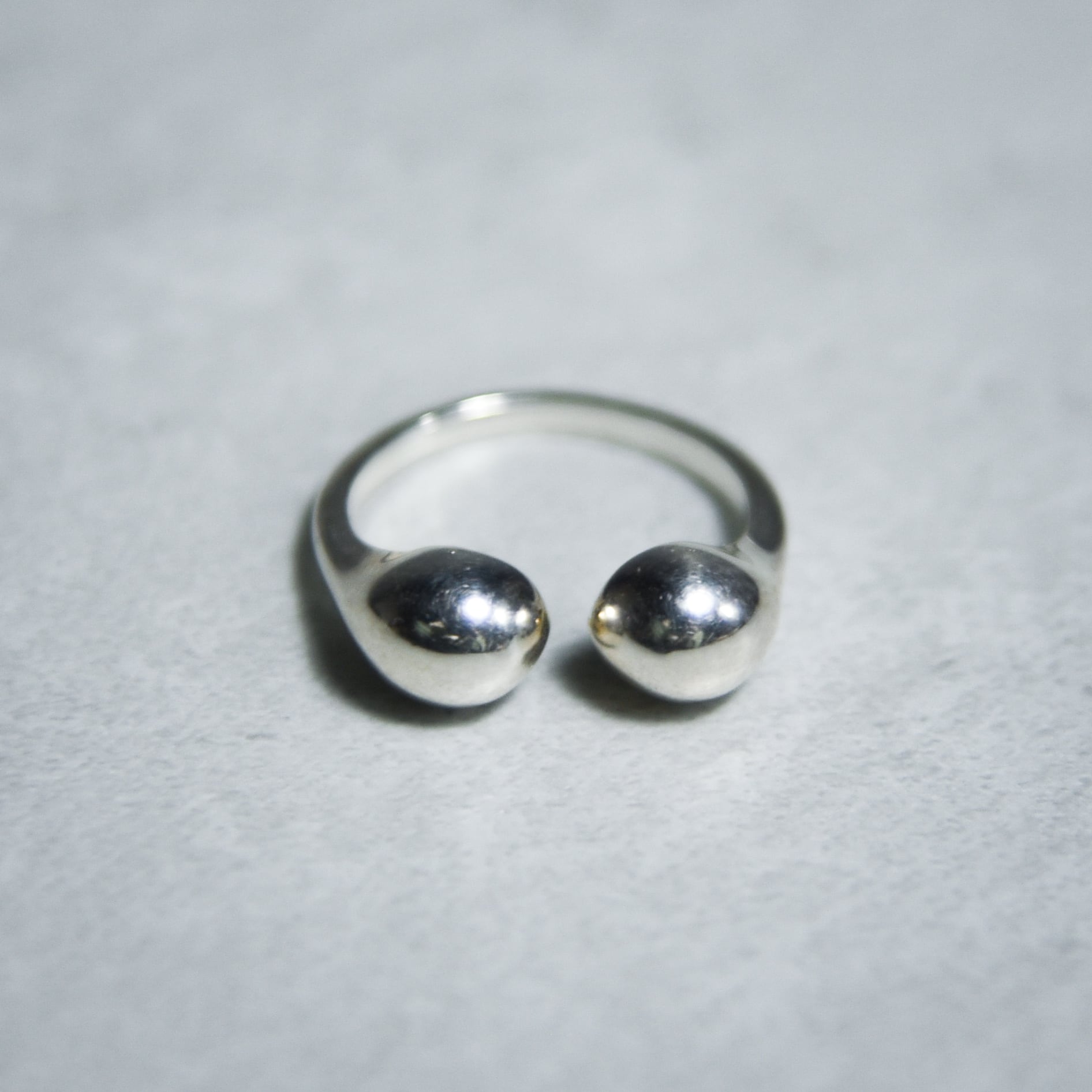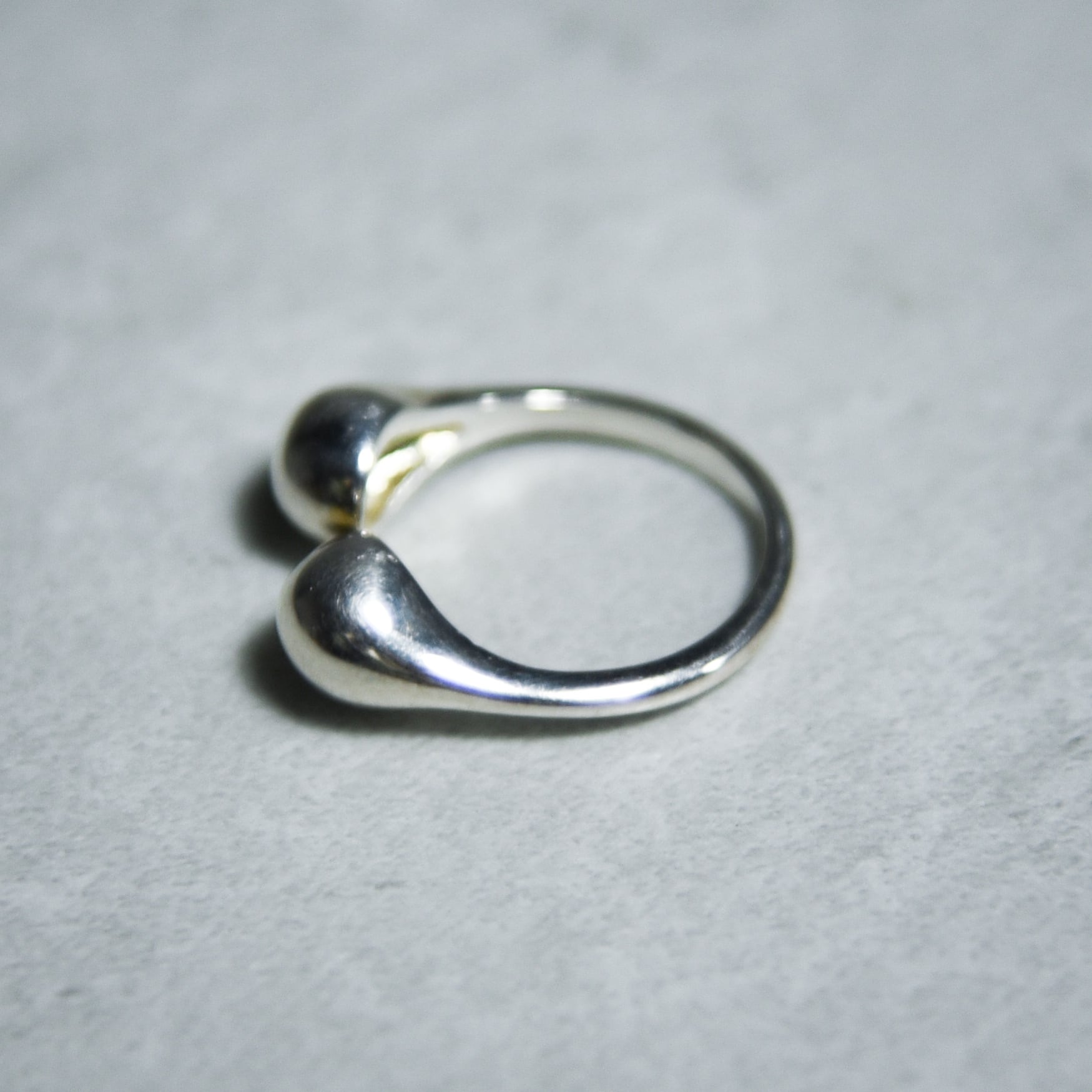 指を包み込むような有機的なフォルムをしており、装飾を削ぎ落としたミニマルなデザインとプリミティブな雰囲気が同居した洗練された印象のリングです。