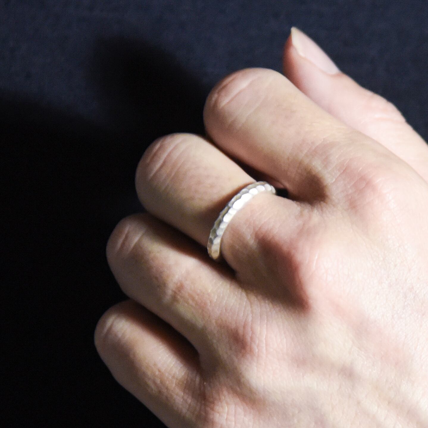 手仕事による精密さと、シルバーの柔らかな素材感が調和した、洗練されたシンプルで合わせやすいリングです。