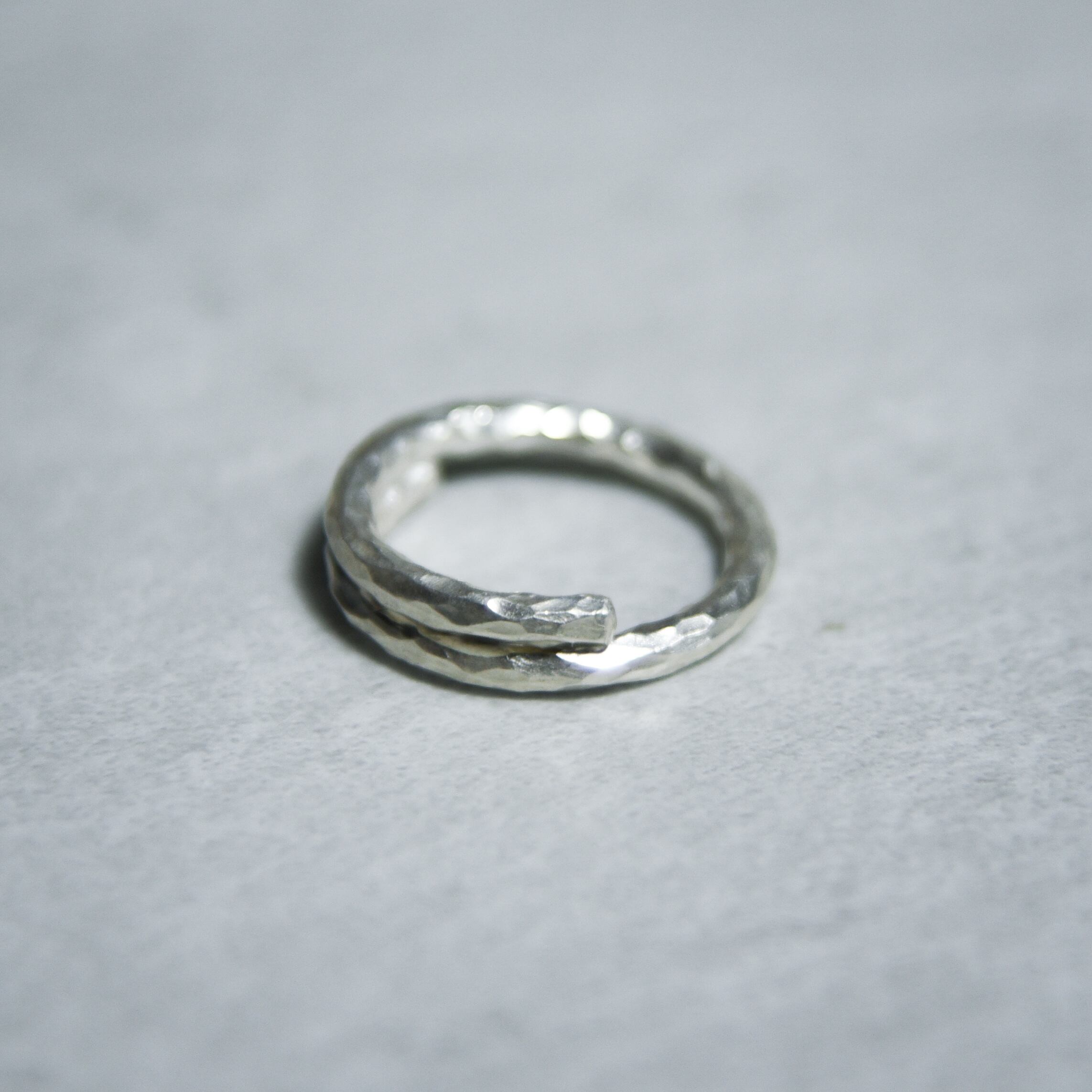 リング全体にランダムな伝統的な槌目が施されています。