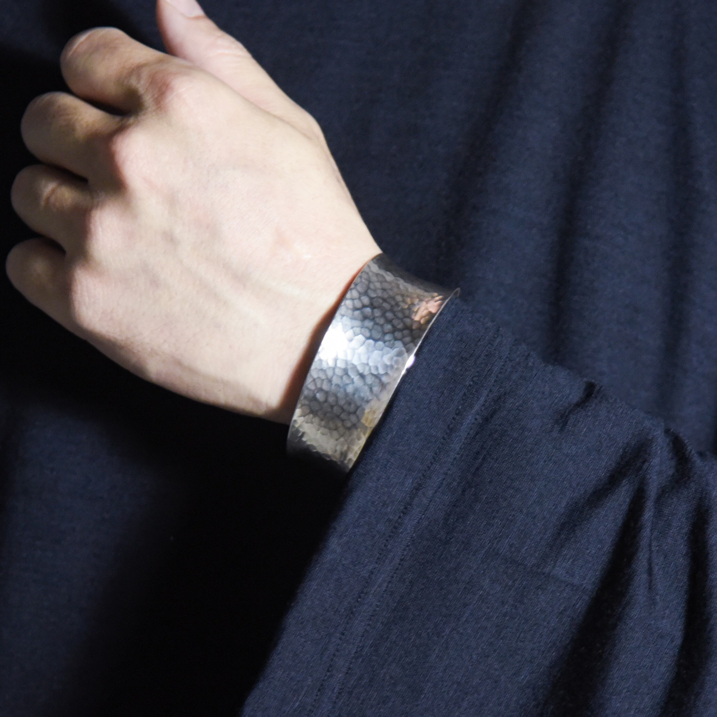 いわゆる槌目と呼ばれる伝統的な技法で、金槌で叩いて独特の模様を出すものです。