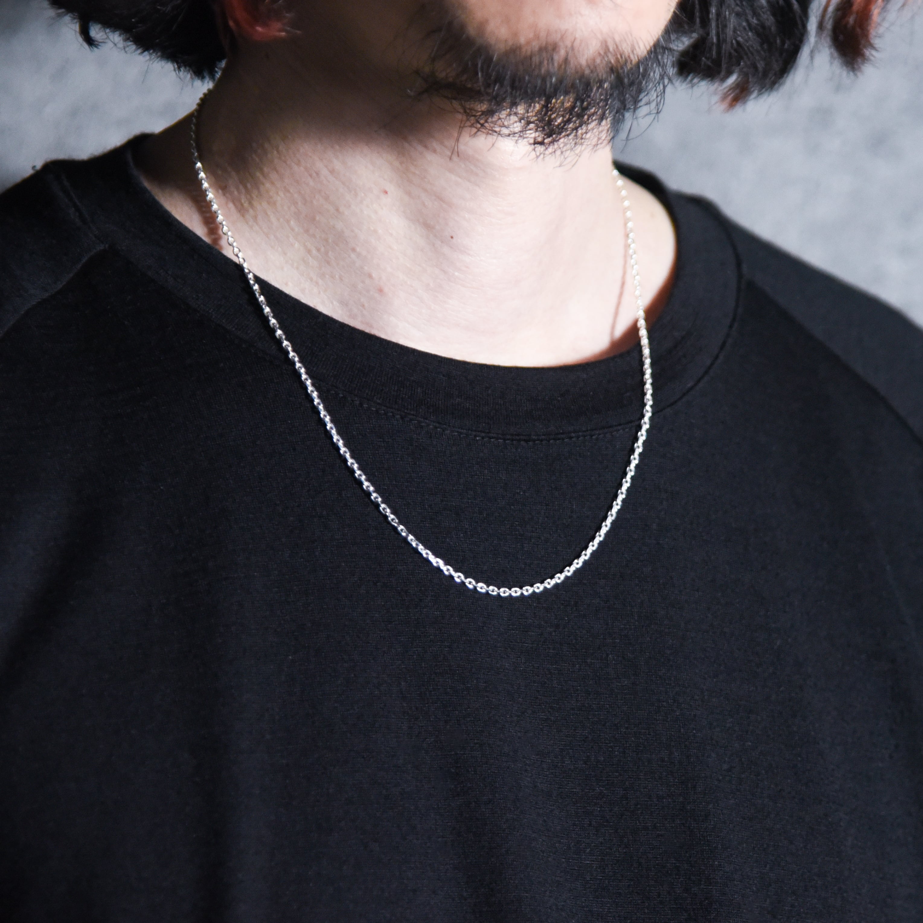 主張し過ぎない適度な太さとミニマルなケーブルチェーンが、上品な印象を与えてくれるジャパンメイドのシルバーネックレス。