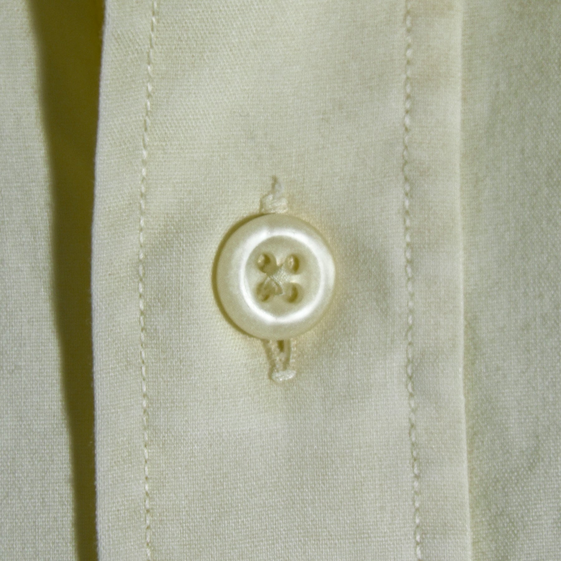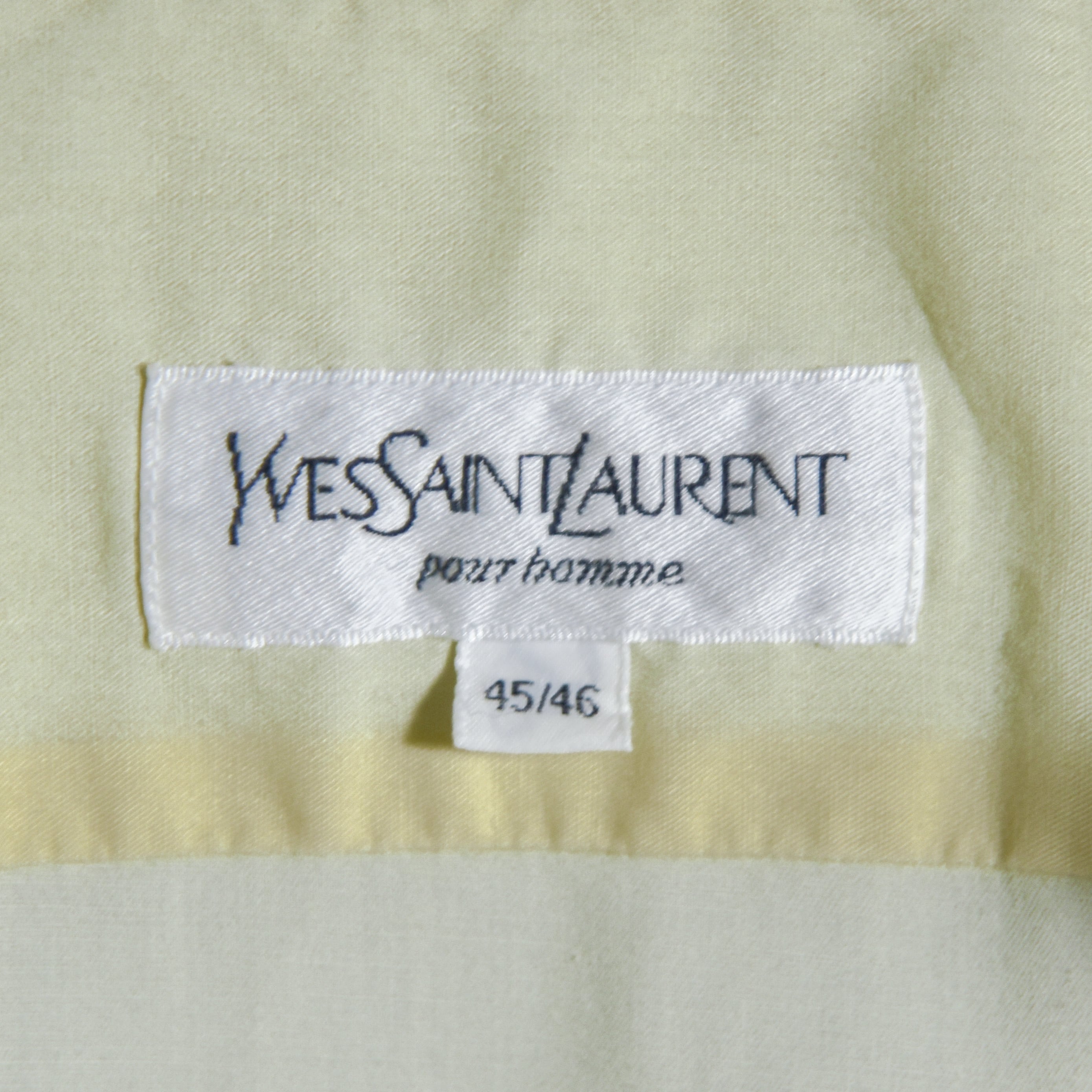 柔らかなペールイエロー、胸ポケット、スタンダードなレギュラーカラーとシンプルで、当時のサンローランらしい都会的で洗練されたシルエット。