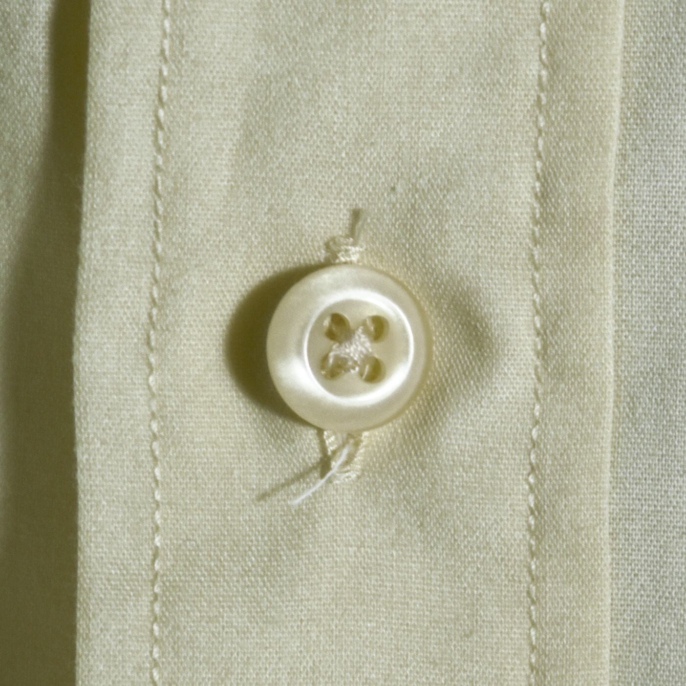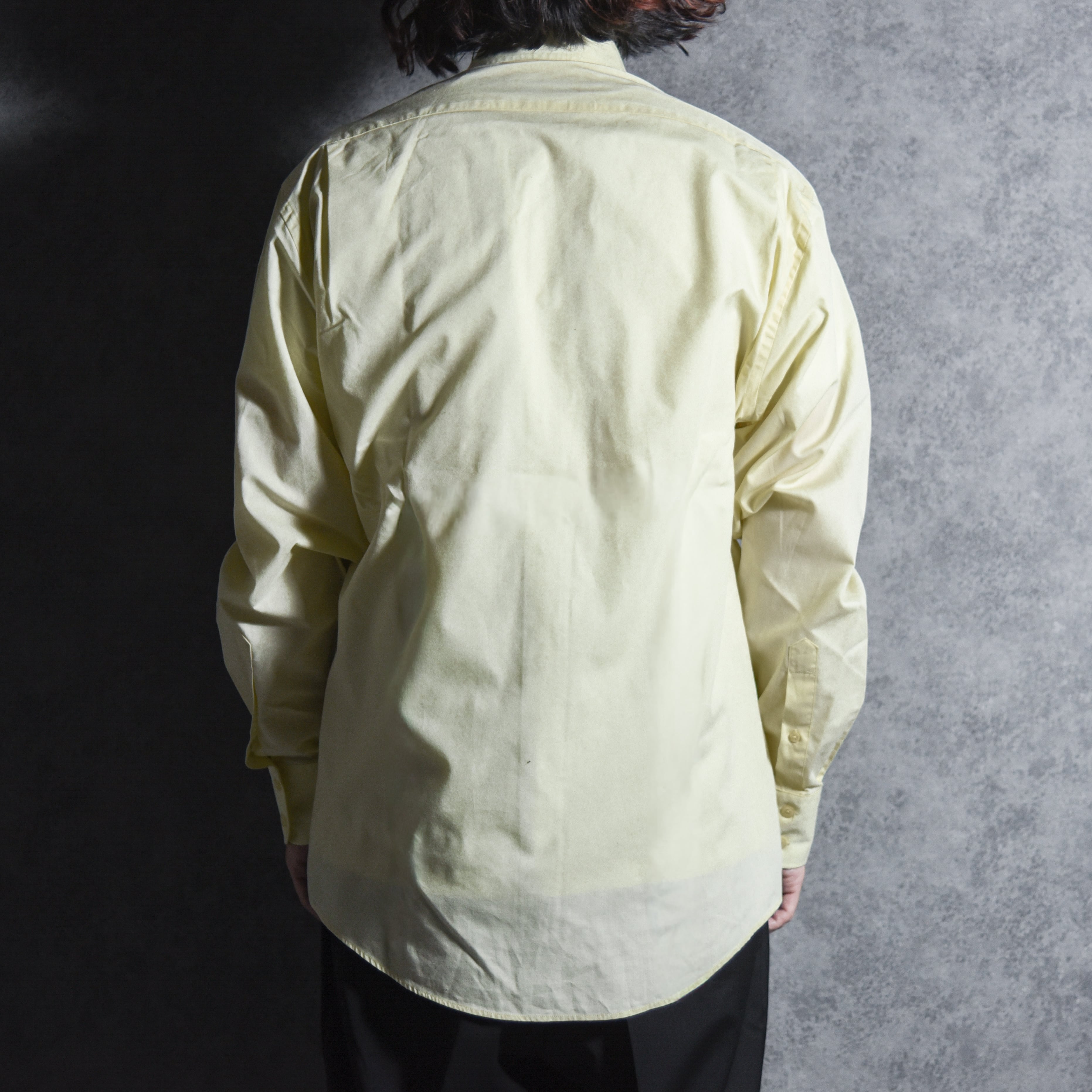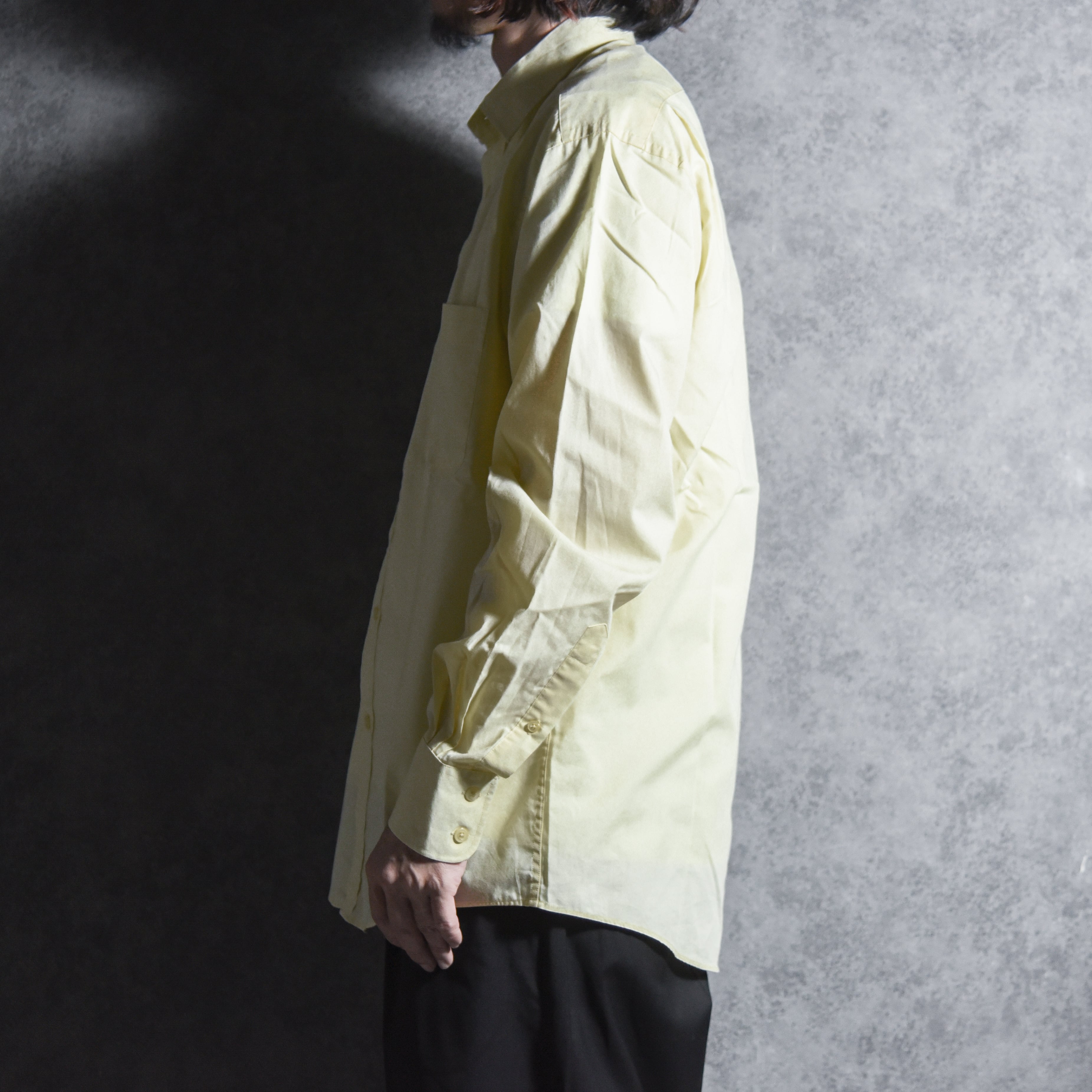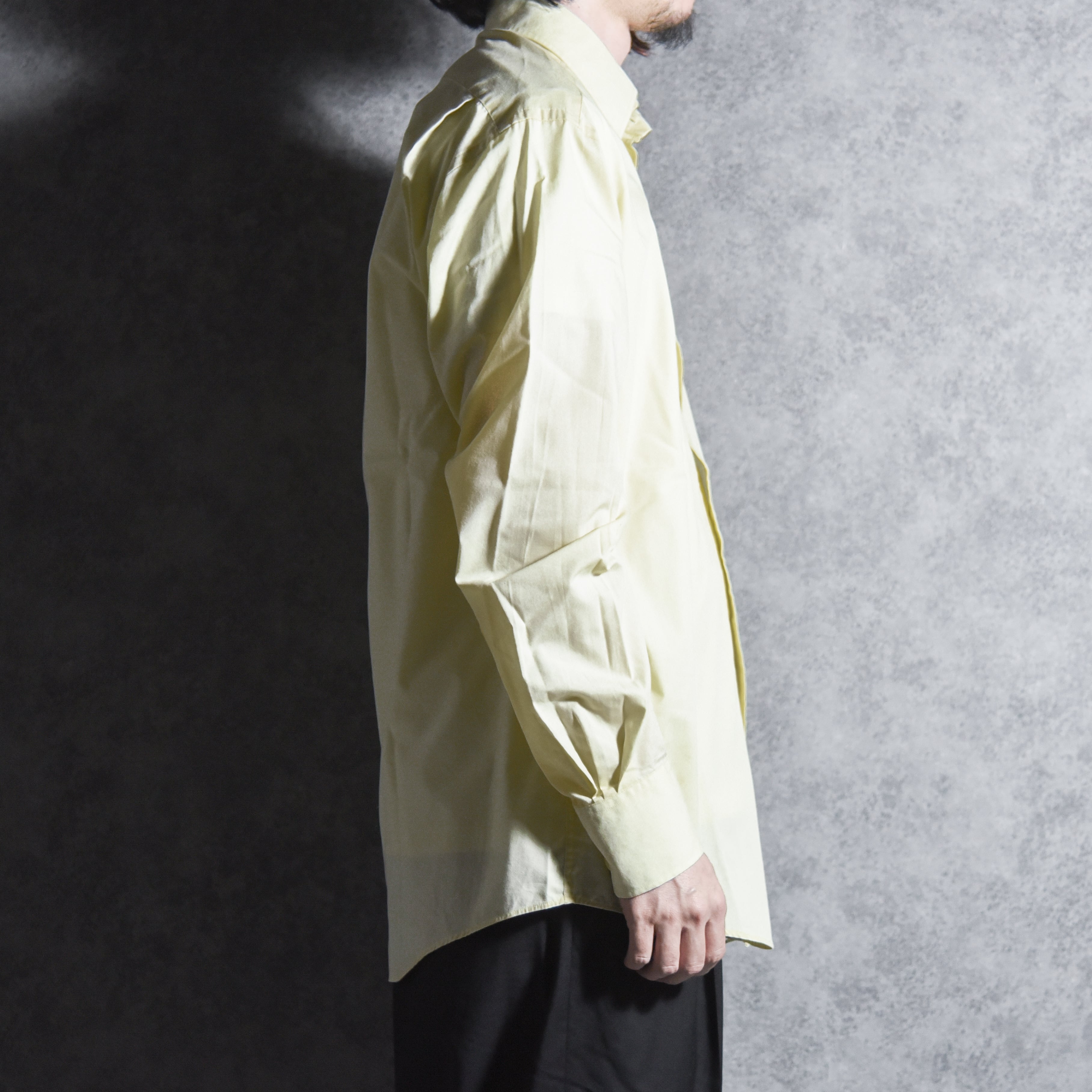柔らかなペールイエロー、胸ポケット、スタンダードなレギュラーカラーとシンプルで、当時のサンローランらしい都会的で洗練されたシルエット。