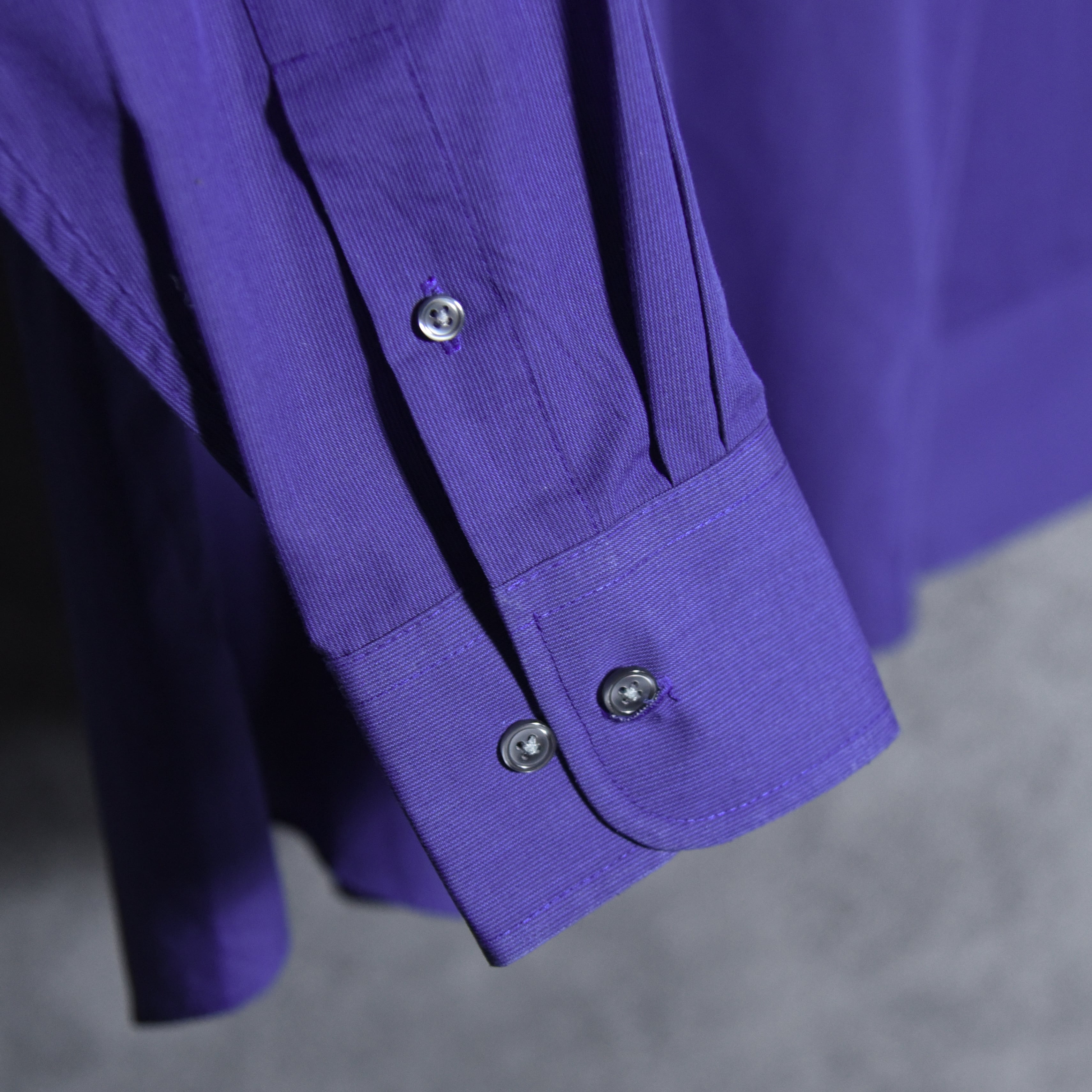鮮やかで深みのあるロイヤルパープルの発色が特徴的な一着。