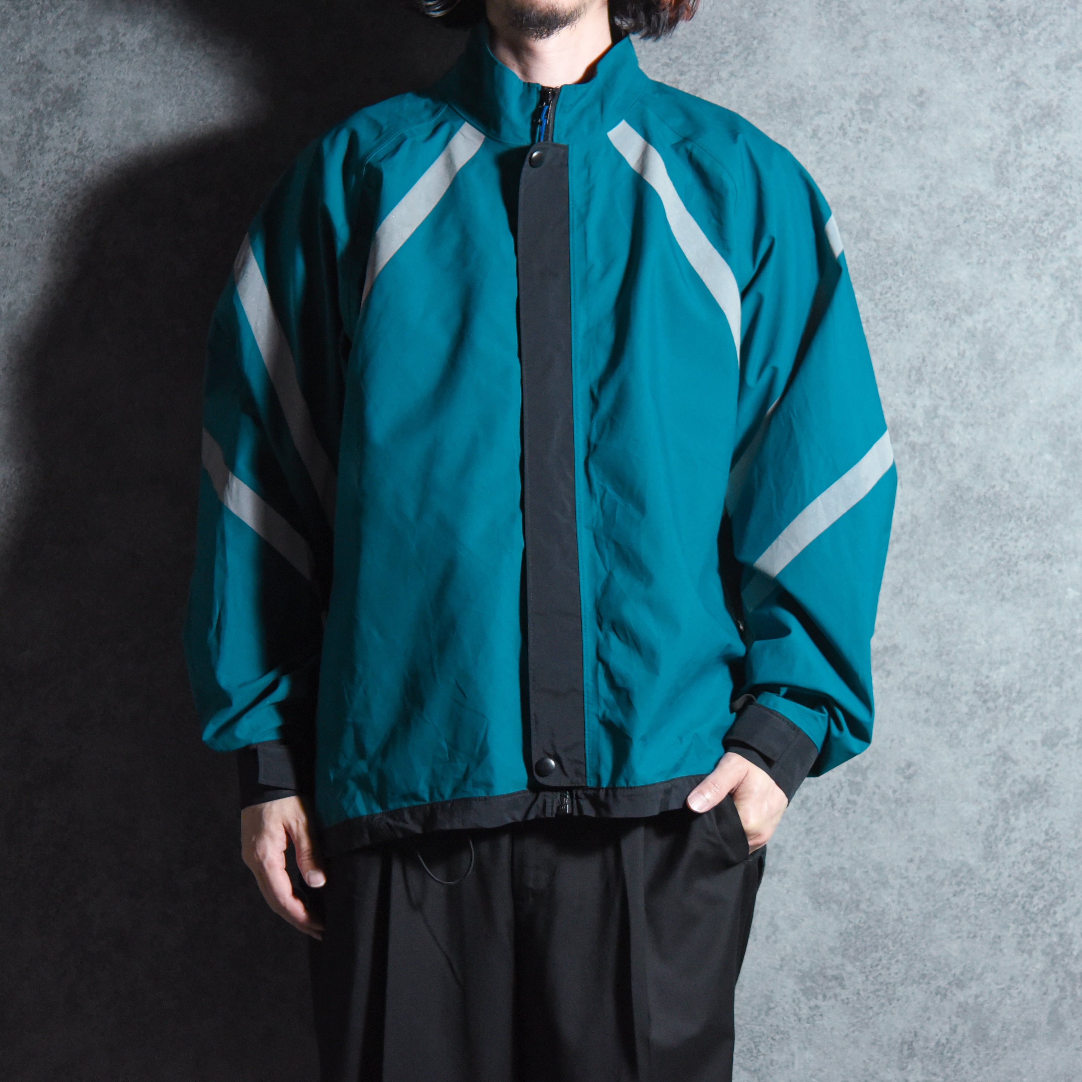 現在のテックウェアやサイクルウェアの源流とも言えるデザインで、現代のトレンドにも通じる非常にモダンな雰囲気とこの年代らしいティールブルー。