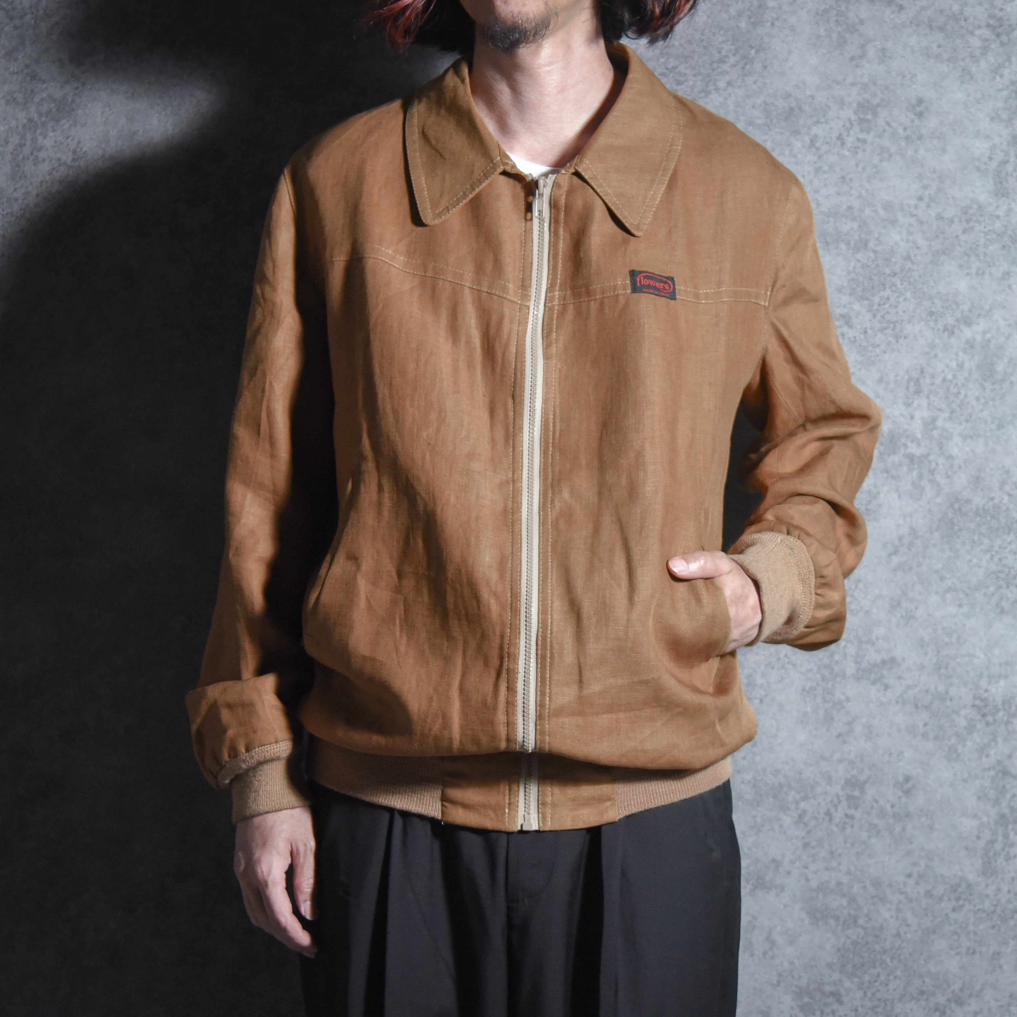 80-90s frowers Linen Zip up Jacket フラワーズ リネン ジップアップ ジャケット