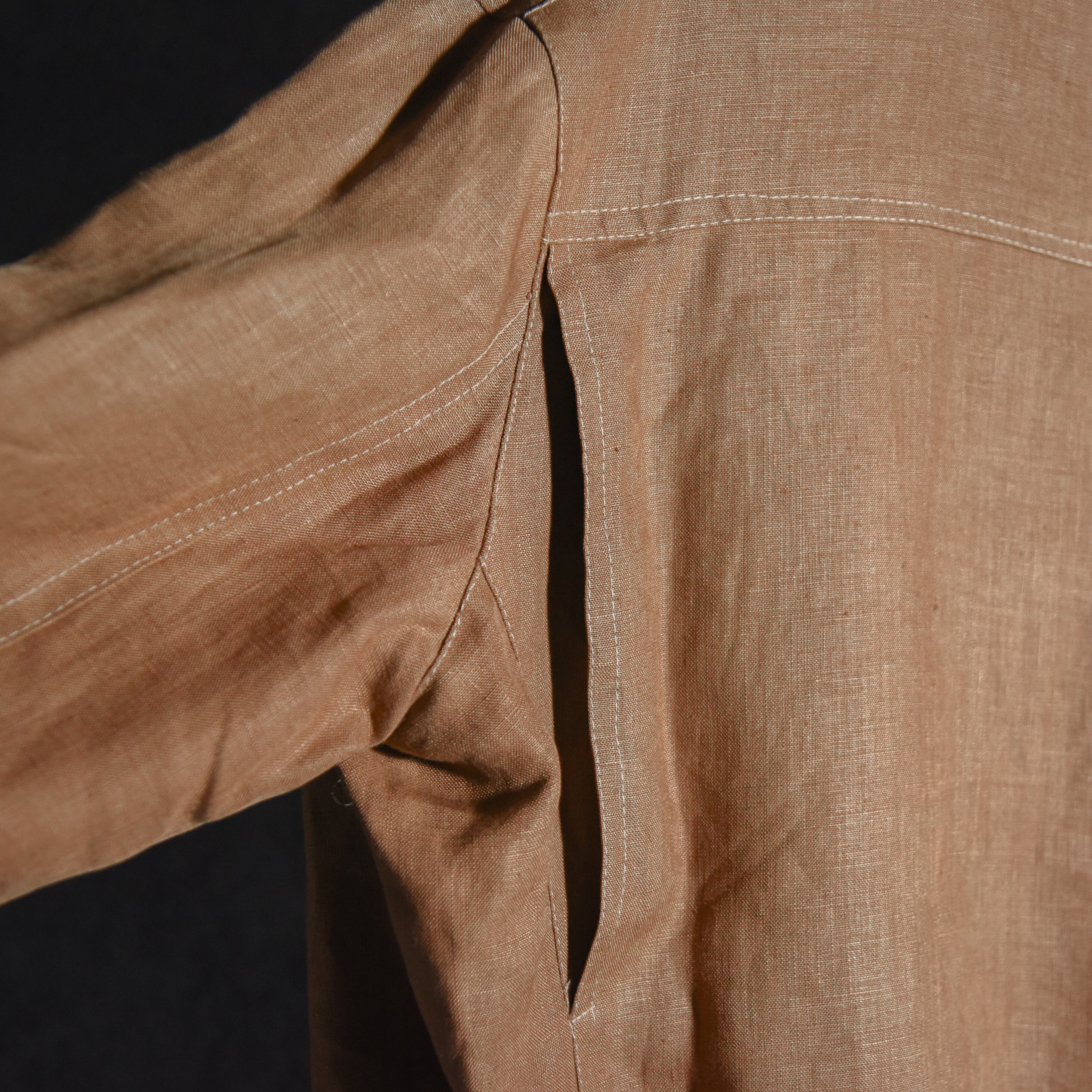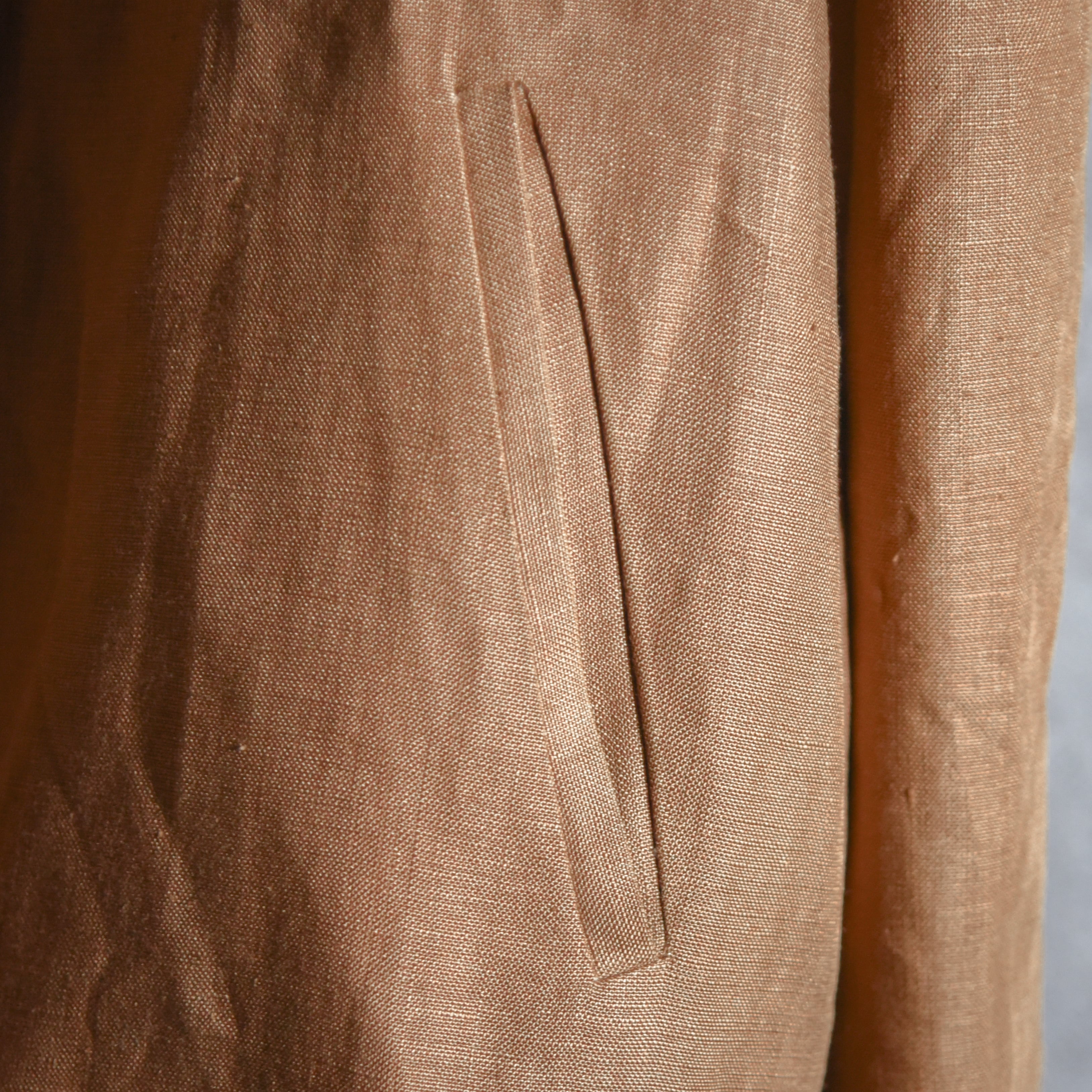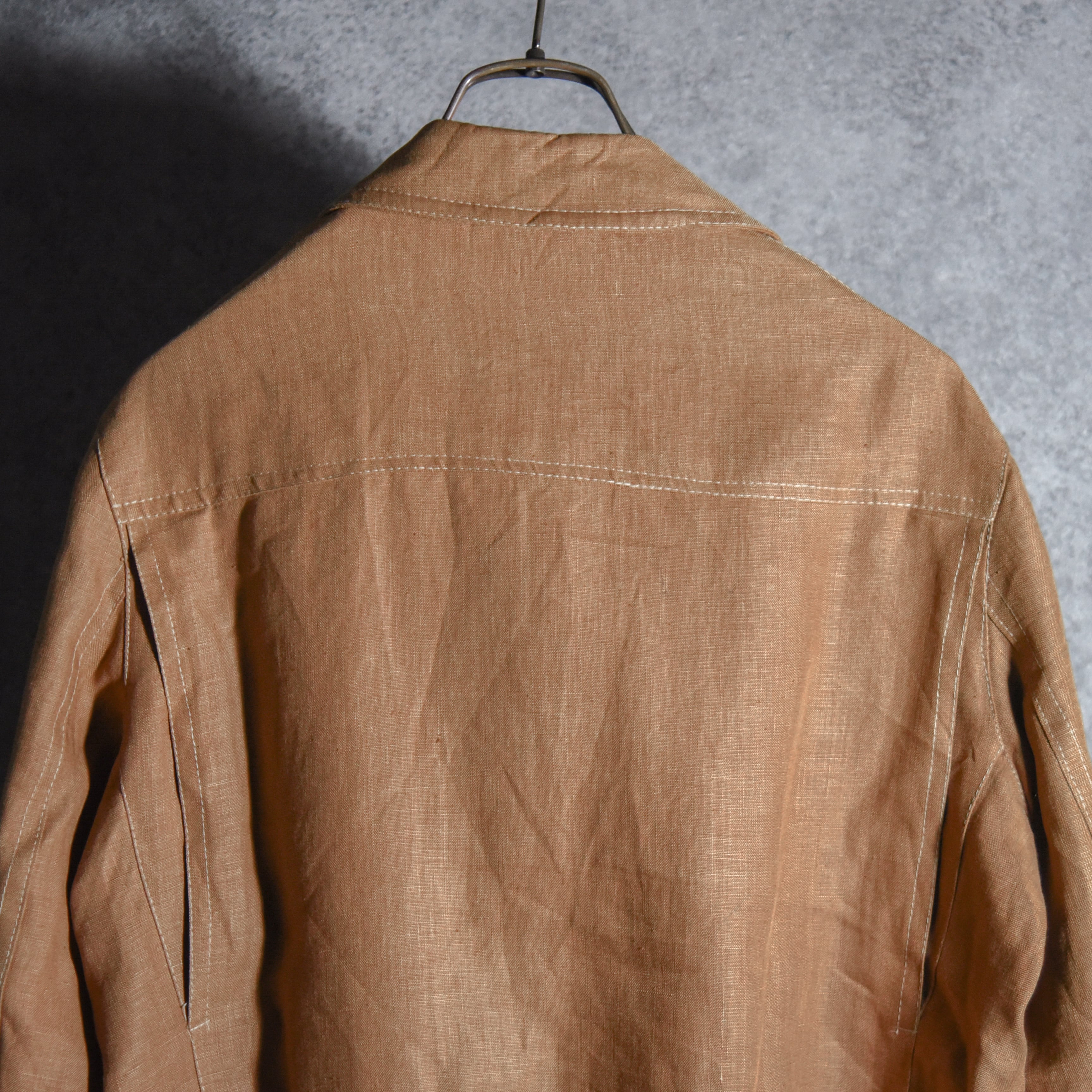 リネンの風合いが非常に良く、ワークジャケットのようなタフな見た目ながら、裏地もついた仕立ての良い上品な一着。