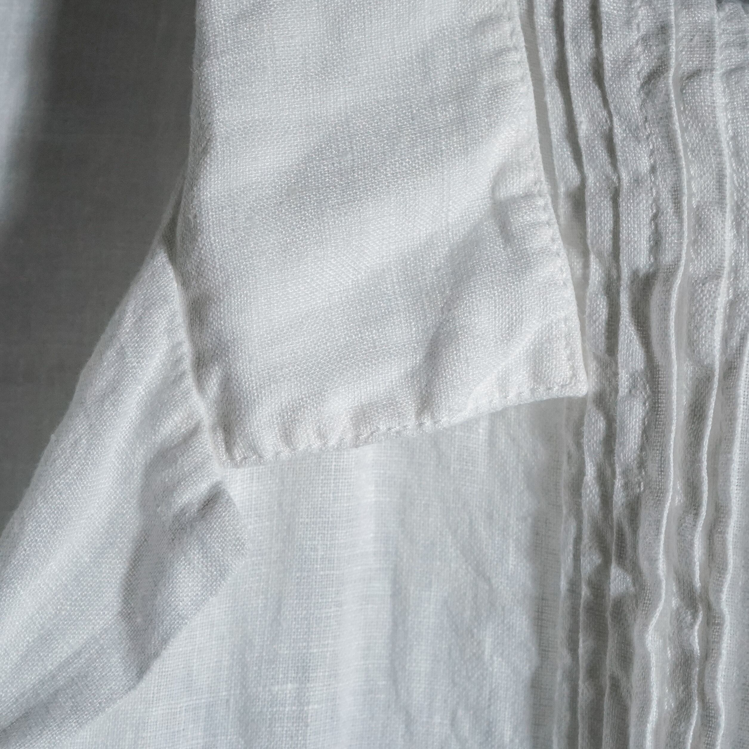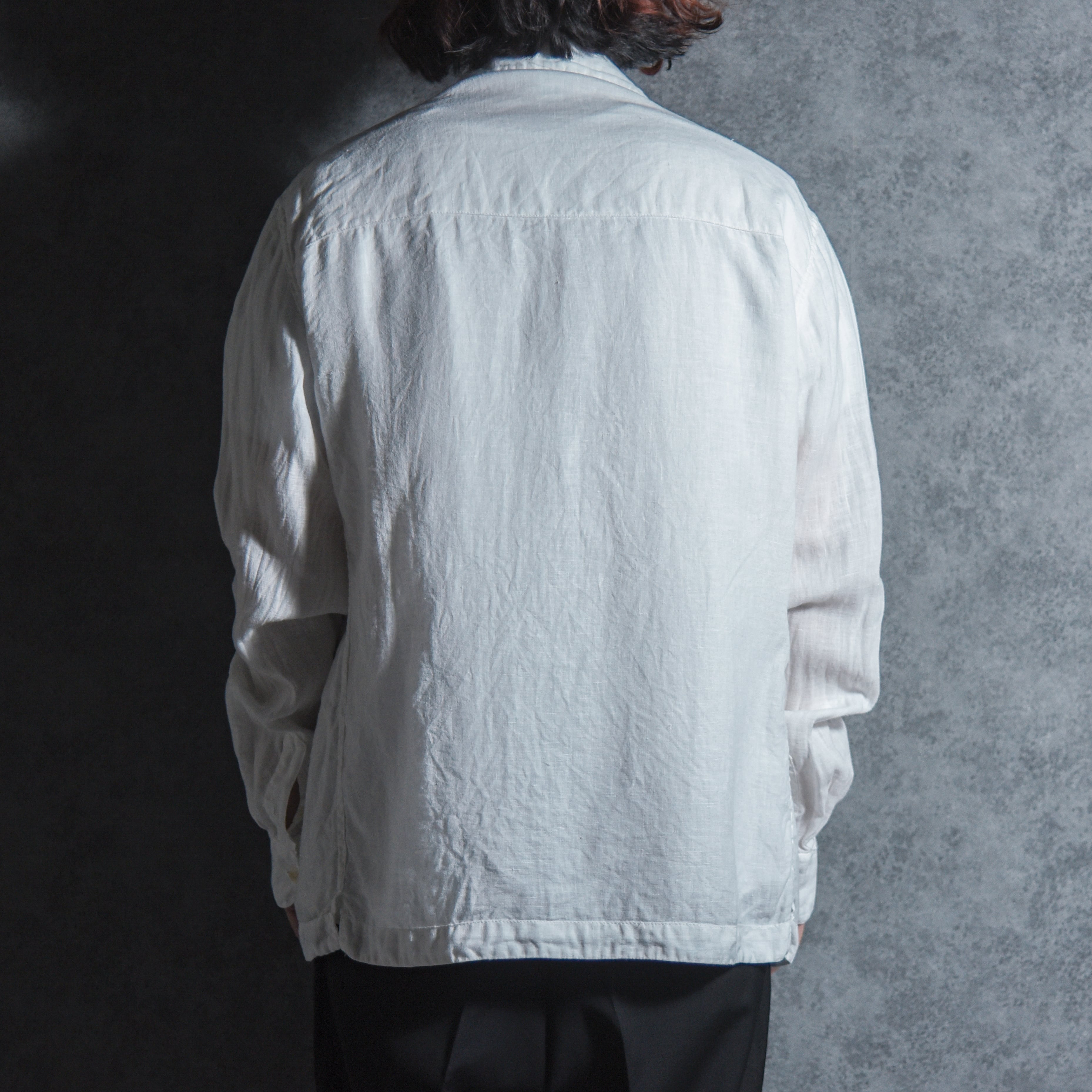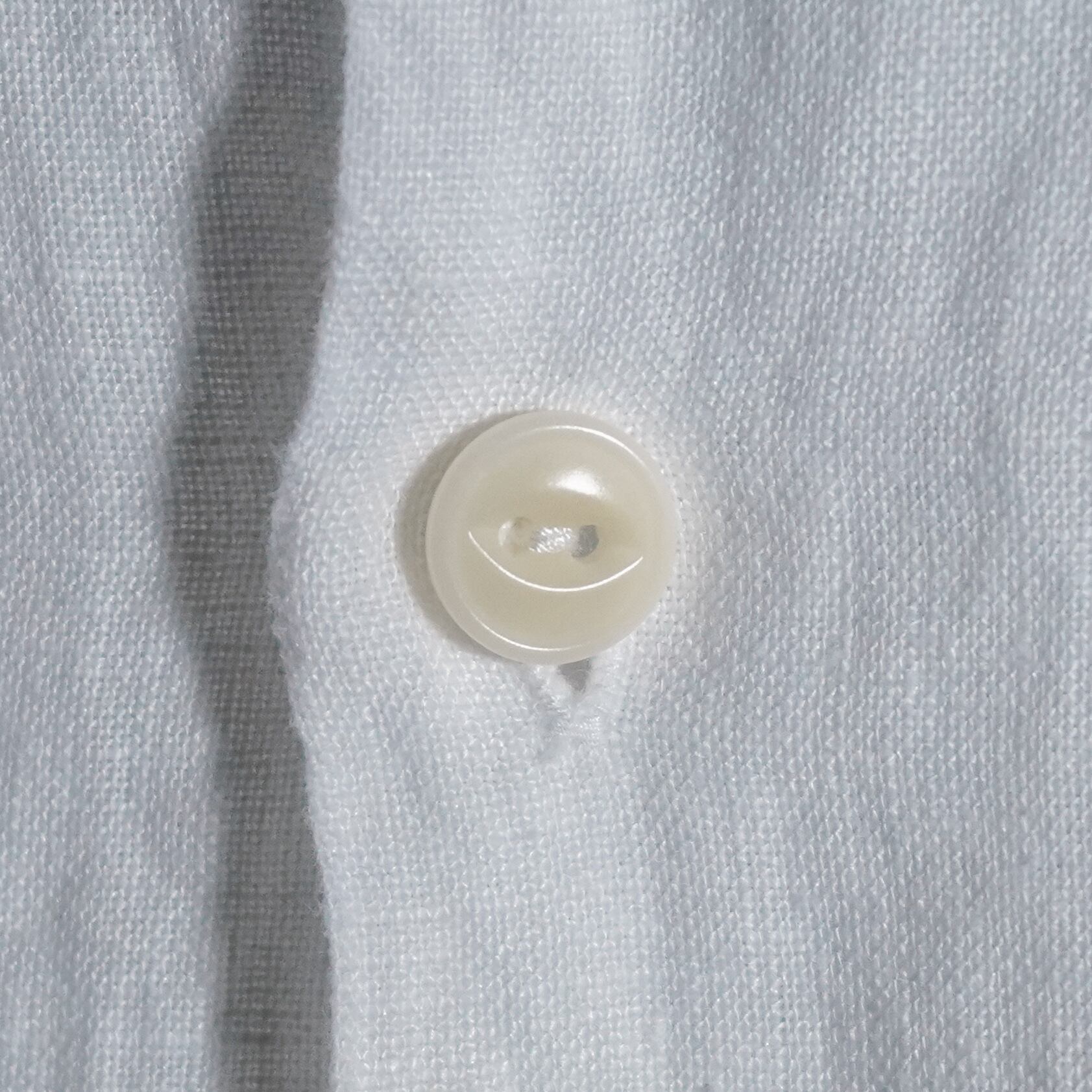 上質なリネンのテキスタイルにボタンは猫目ボタンが採用されたヴィンテージを意識したディテールです。