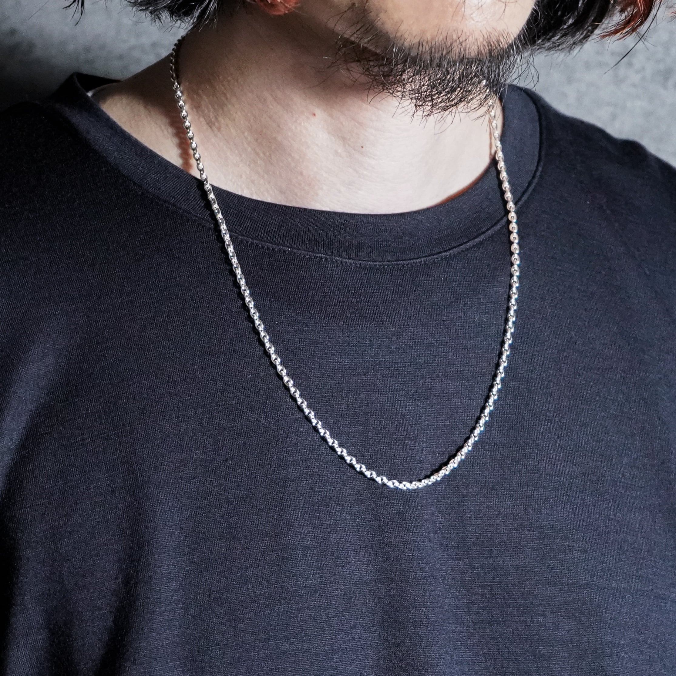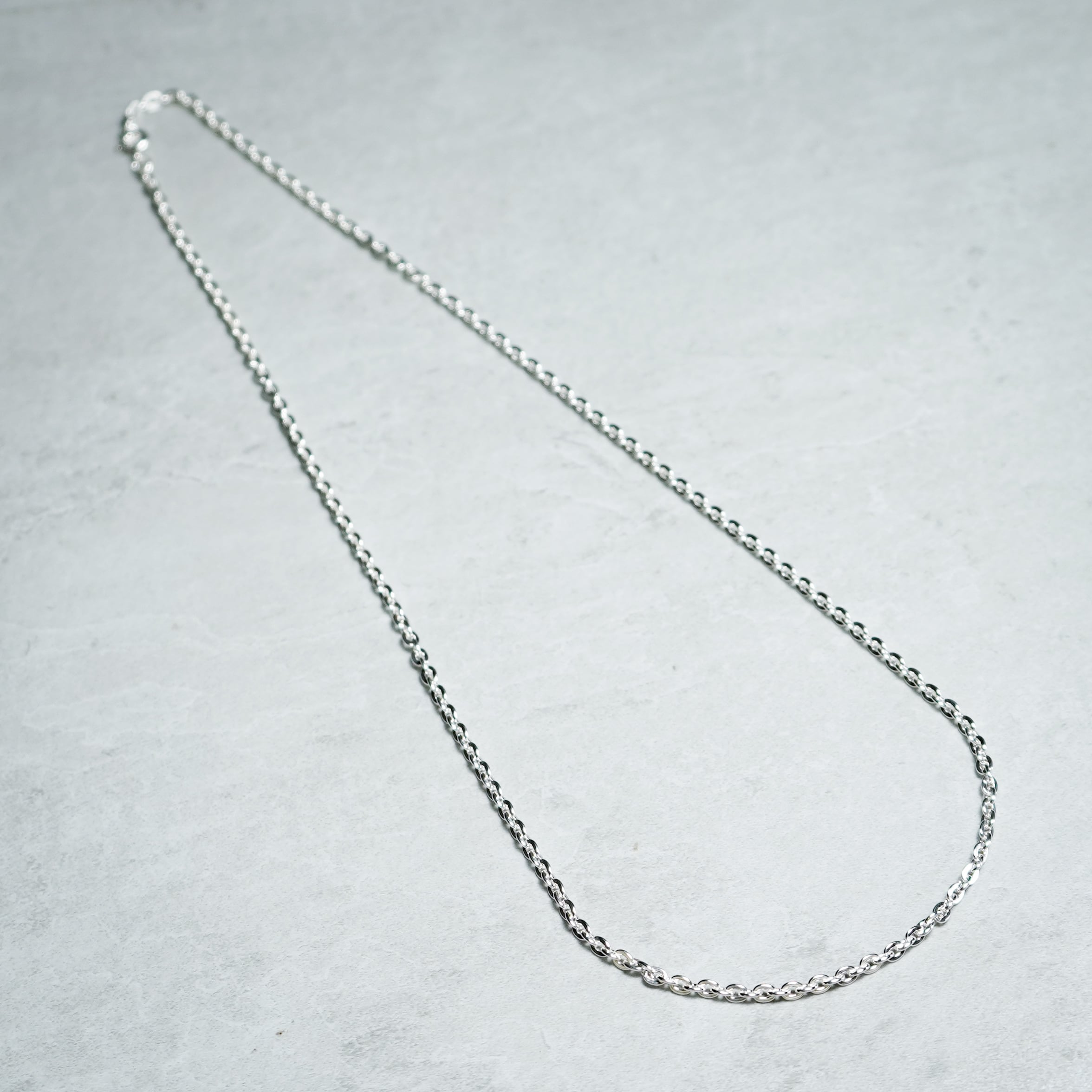 日本ではあずきチェーンと呼ばれるオーバルリングを繋げたオーセンティックな一本。
