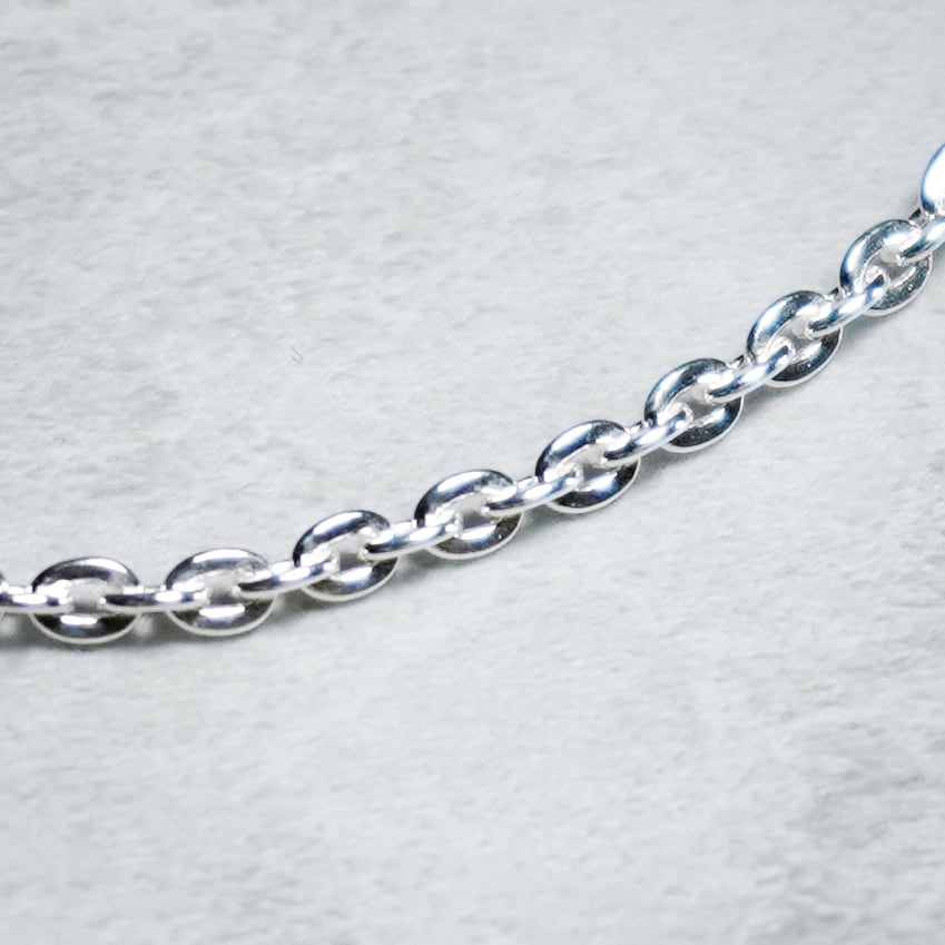 日本ではあずきチェーンと呼ばれるオーバルリングを繋げたオーセンティックな一本。