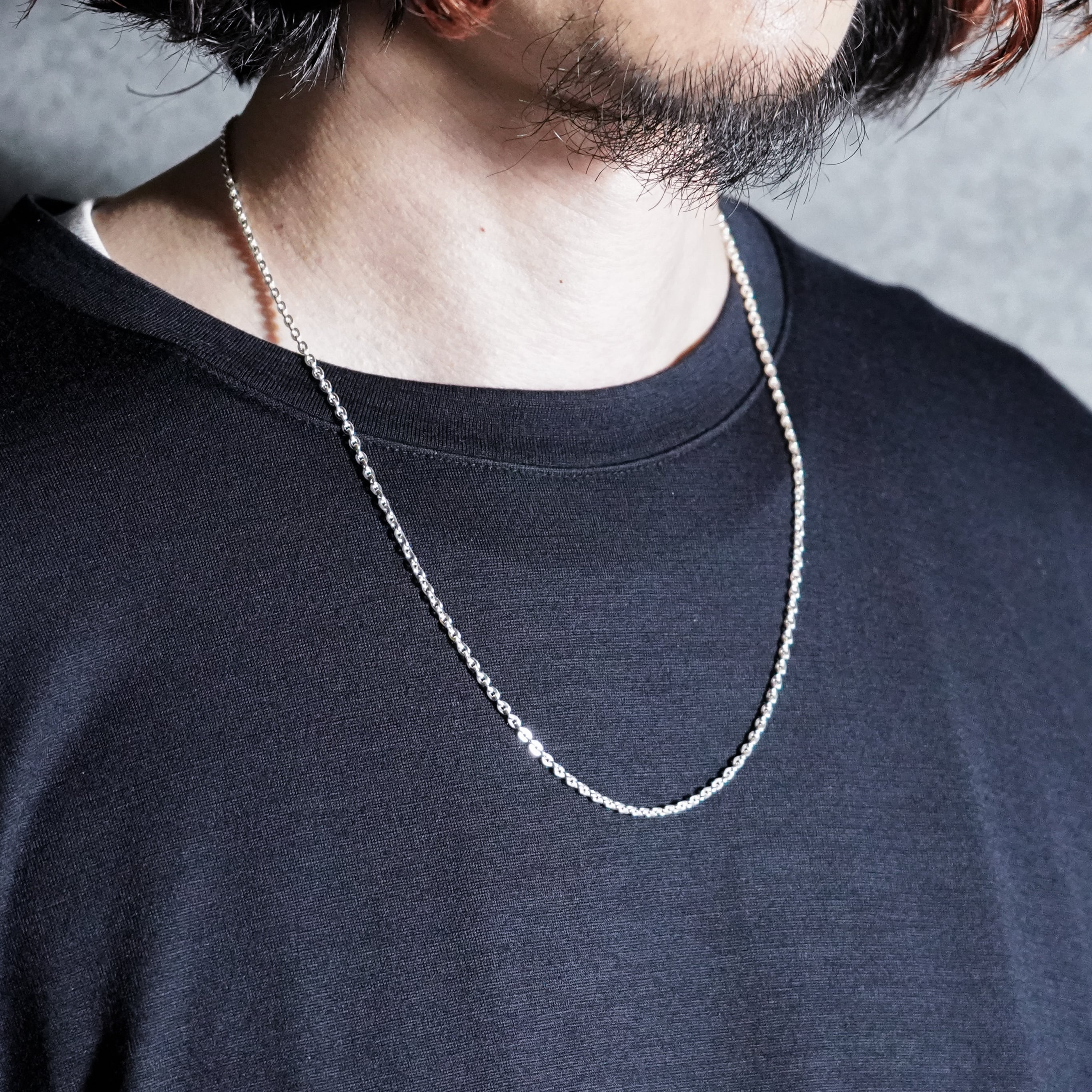シンプルな形状に55cmと付けやすい長さのため、スタイルを選ばず着用でき、またペンダントトップを付けてアレンジするなど汎用性が非常に高いお勧めの逸品です。