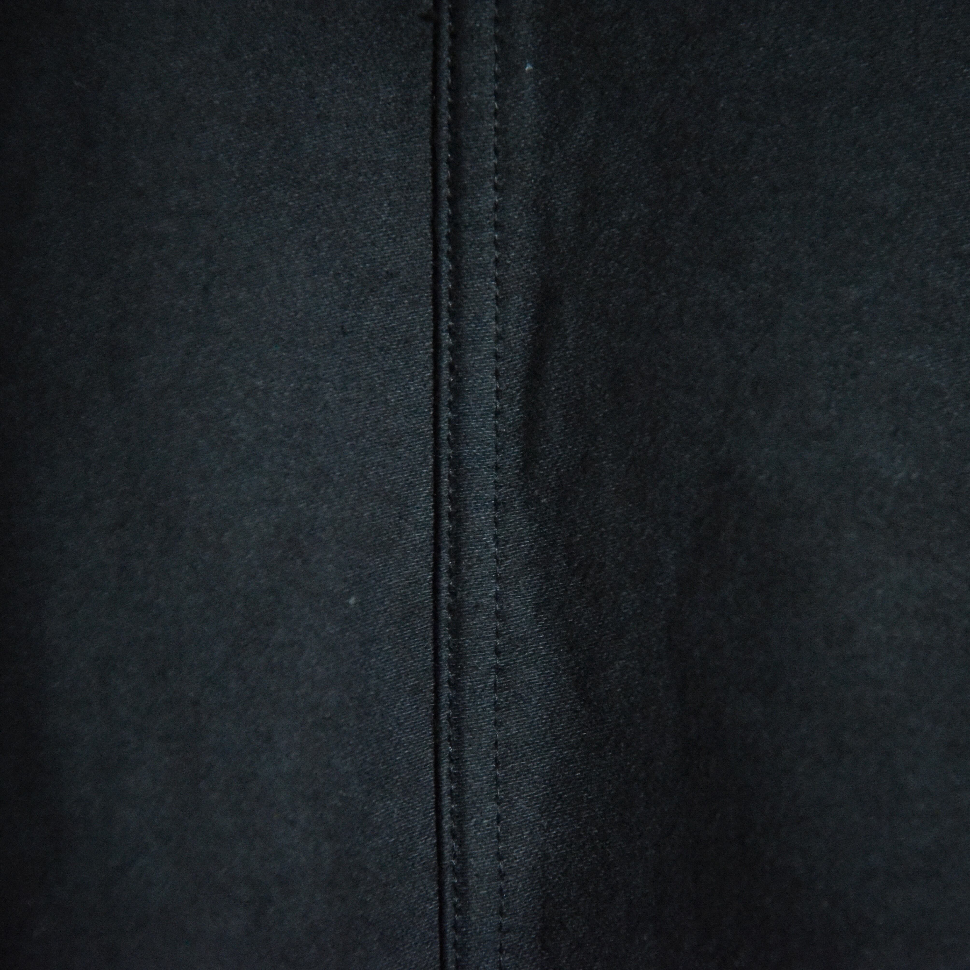 生地は中厚のコットンサテンで、肌触りがよく、さらに染色工程の洗いによって程よく柔らかさと落ち感を出した、シーズン問わず非常に着やすい生地感です。
