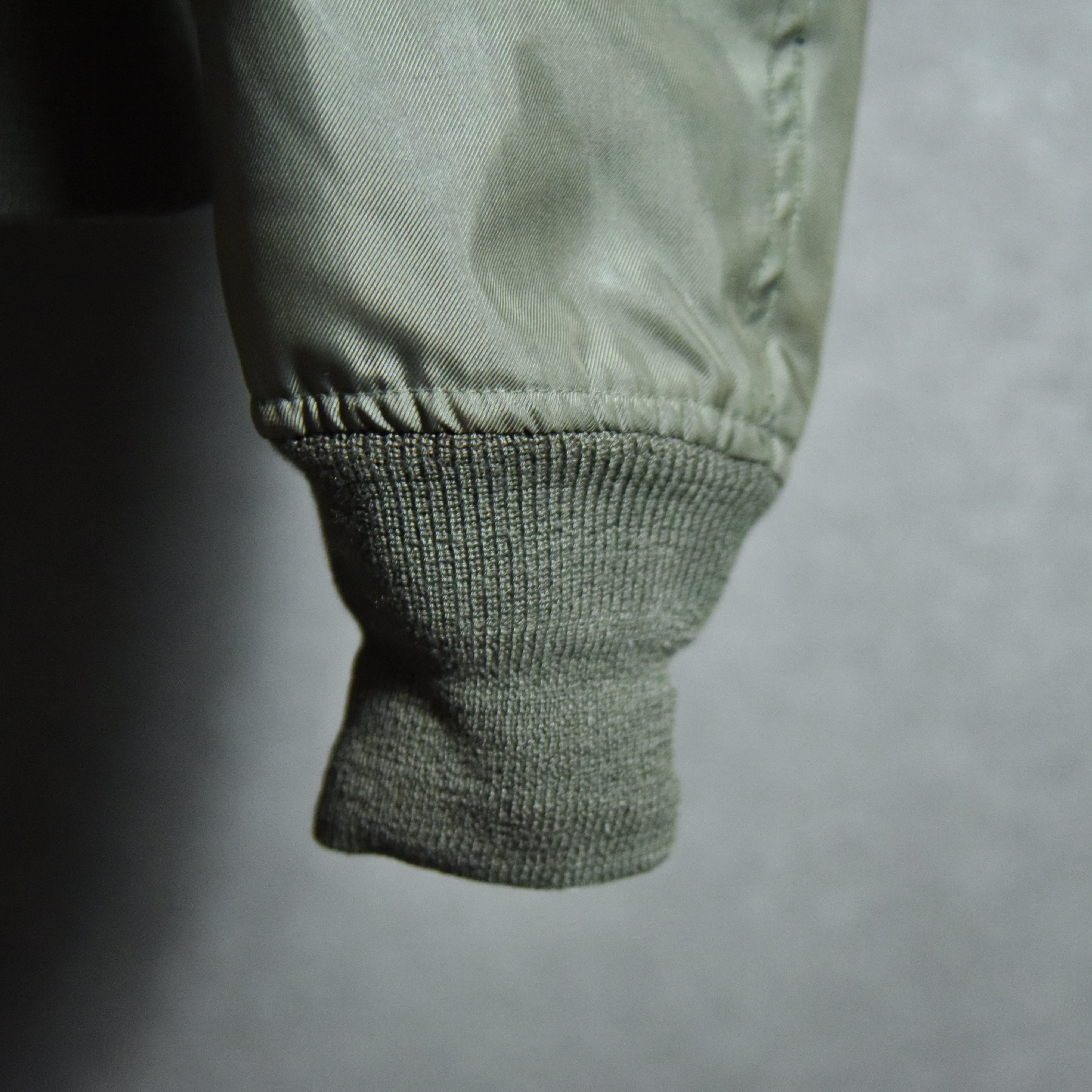 最初期型の特徴でもあるアクションプリーツ、両サイドに付いた大きく深さのある独特なポケット、やや小ぶりなラウンドカラー、フロントはフルオープンのメタルジッパーで、リブ切り替えの袖口と裾やフライトジャケット定番のシガーポケットなど、必要なディテールが絶妙なバランスで配置されたアイコニックなジャケット。