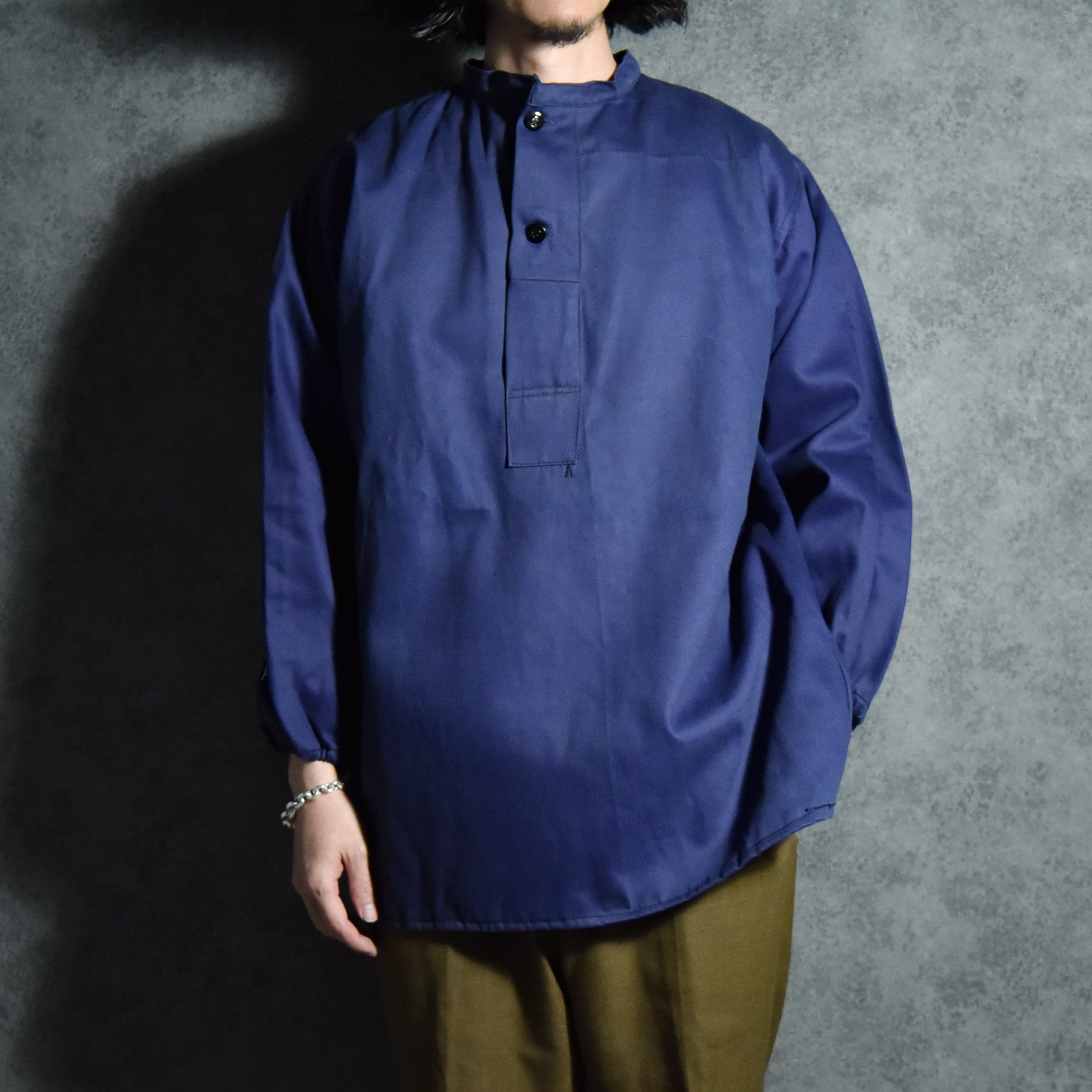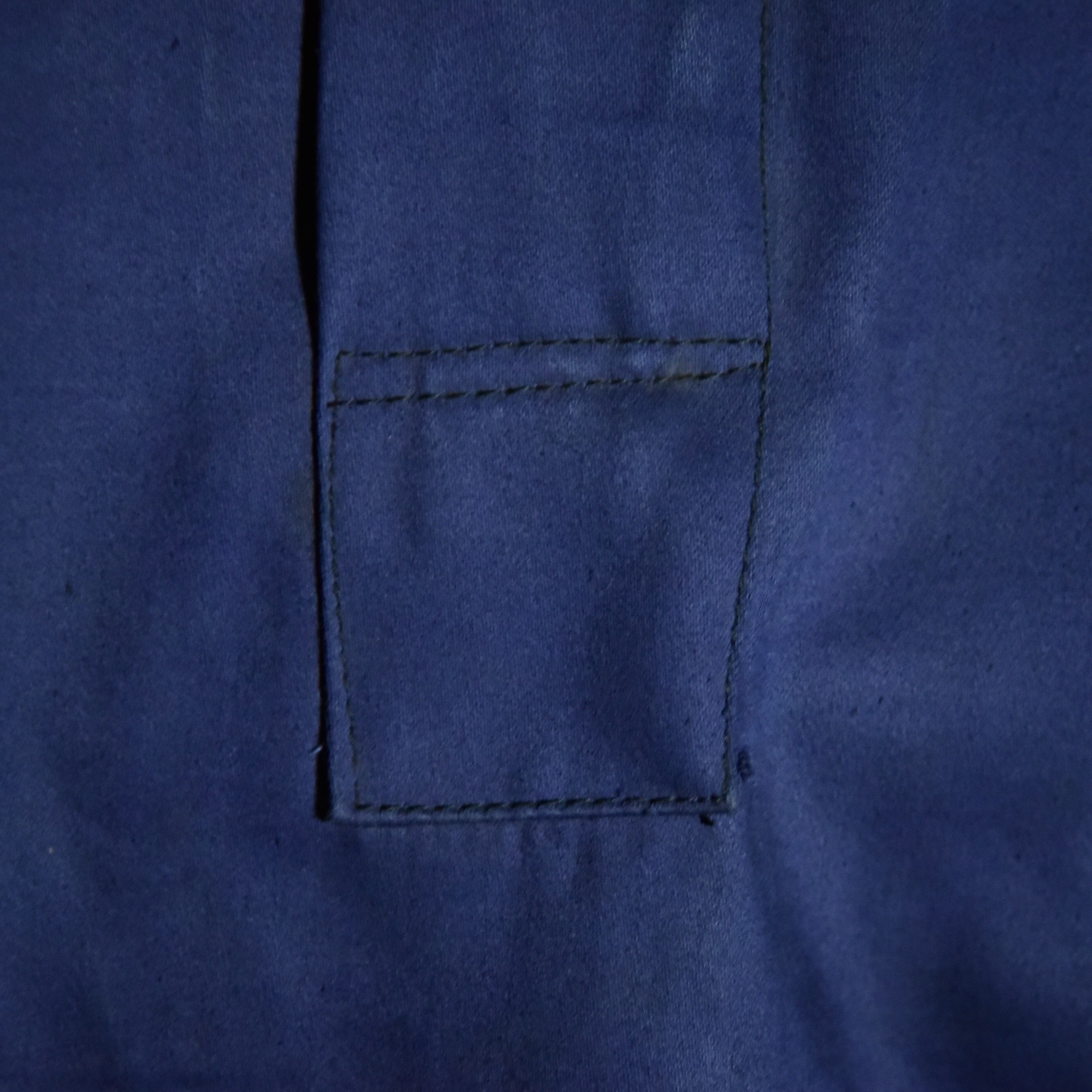 フレンチワークの代名詞とも言えるブルーモールスキンジャケットですが、今回入荷したのはフランスのボルドー地方でのみごく稀に見つかるプルオーバー型で、牡蠣漁師のワークウェアとして着用されていた限定的かつ面白い一着。