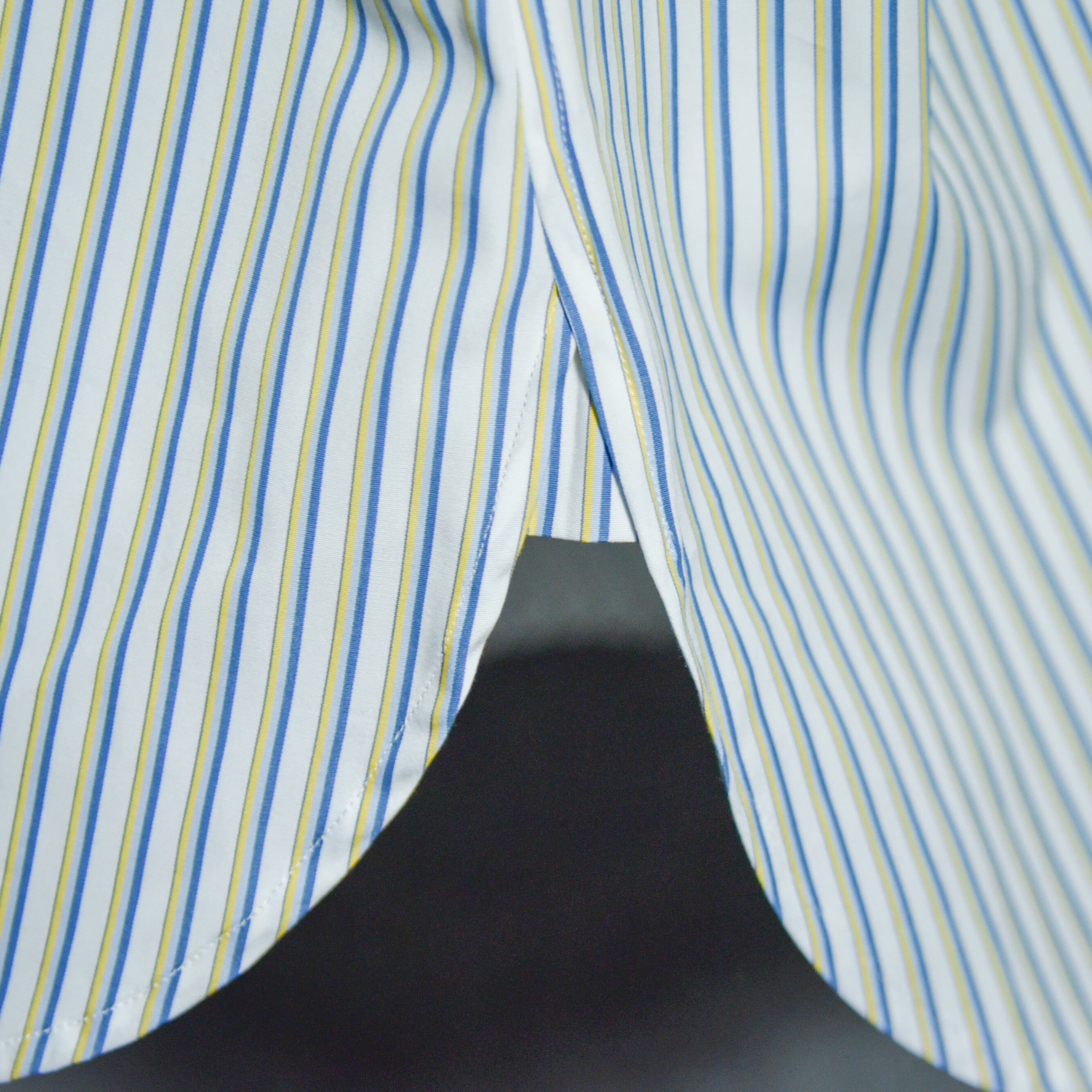 100番手の細番糸を双糸使いで高密度に織り上げた、ハイカウントブロードと呼ばれる素材で、適度なハリと極上のしなやかさを併せ持ち、トーマスメイソンの糸の品質の良さ、織り技術の高さを実感できる正にシャツ地の王道です。